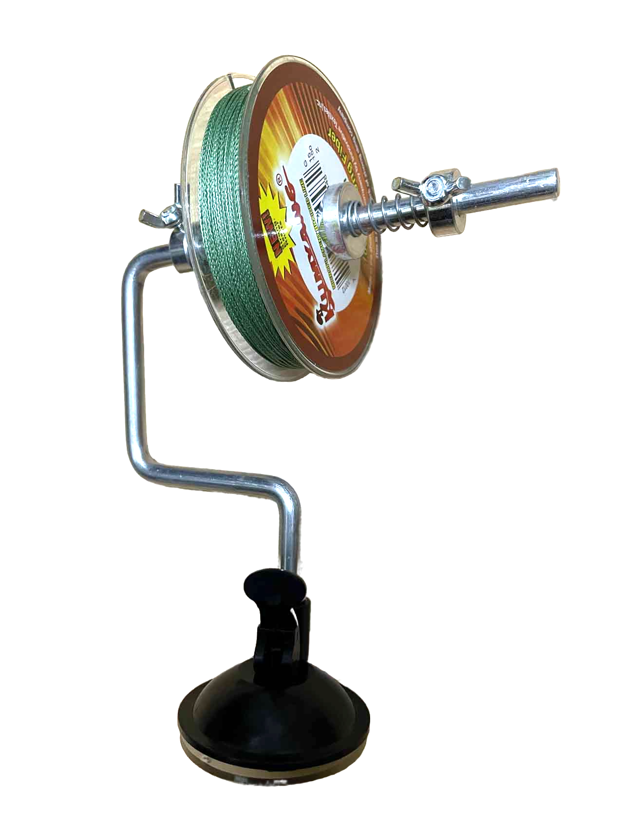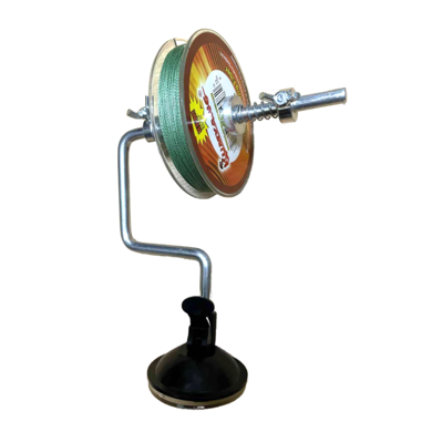 Для удобства использования закрепить намотчик можно на любой гладкой поверхности: стол, подоконник, капот или стекло автомобиля (в случае намотки в походных условиях). Для этого предназначена эластичная присоска со специальным курком, обеспечивающим ее прижатие. В присоску вкручивается металлическая штанга с устройством, обеспечивающим натяг лески. После использования намотчик легко отсоединяется от поверхности (достаточно изменить положение курка) и разбирается. После чего компактно укладывается в пакет или карман сумки.