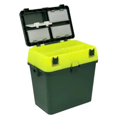 Этот универсальный ящик для зимней рыбалки разработан с учетом всех особенностей вашего любимого хобби. Он позволит вам с удобством разместить все необходимые снасти, а встроенные отсеки и органайзеры помогут поддерживать идеальный порядок на протяжении всей рыбалки.