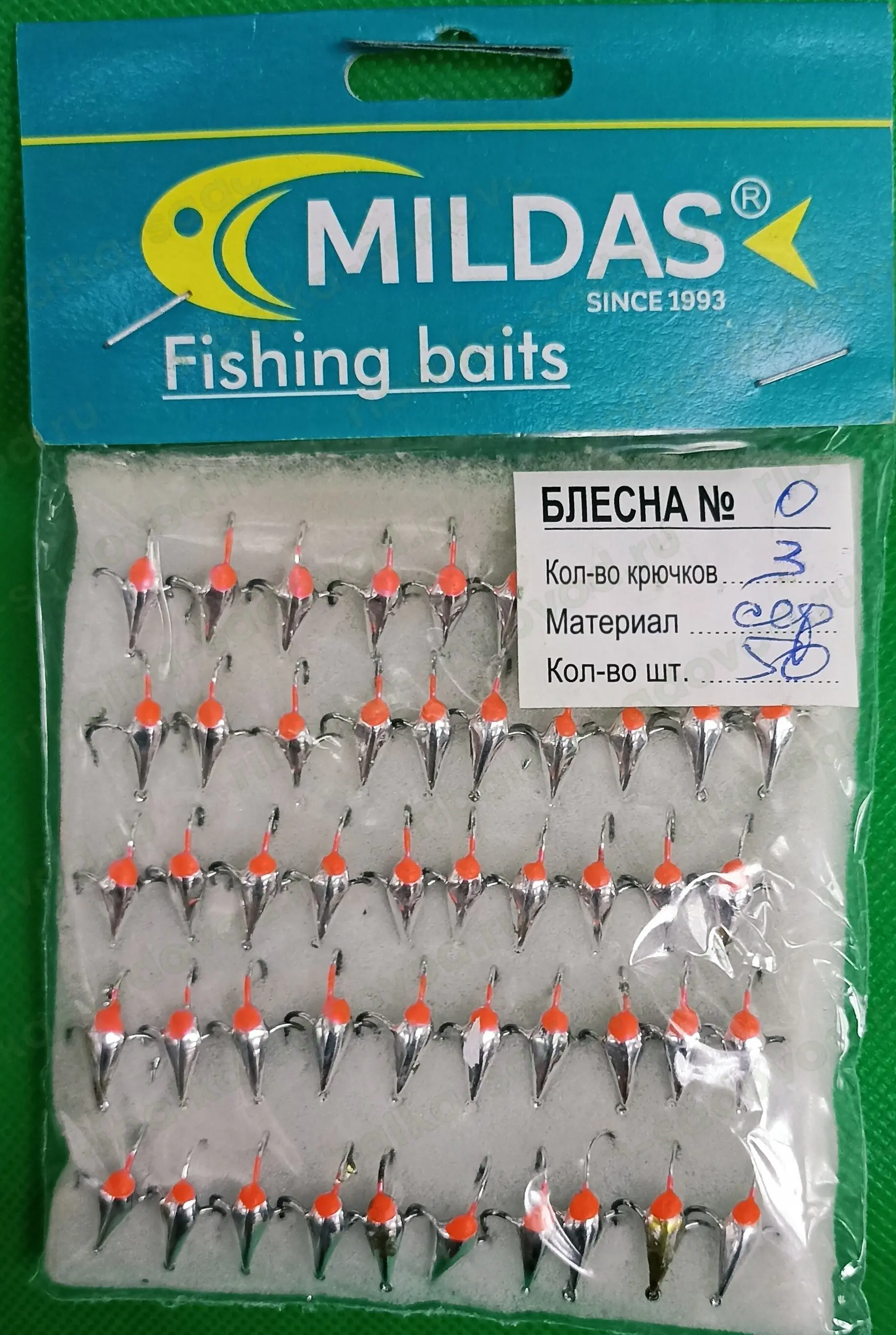 Блесна зимняя MILDAS тройной крючок упаковка 50 штук