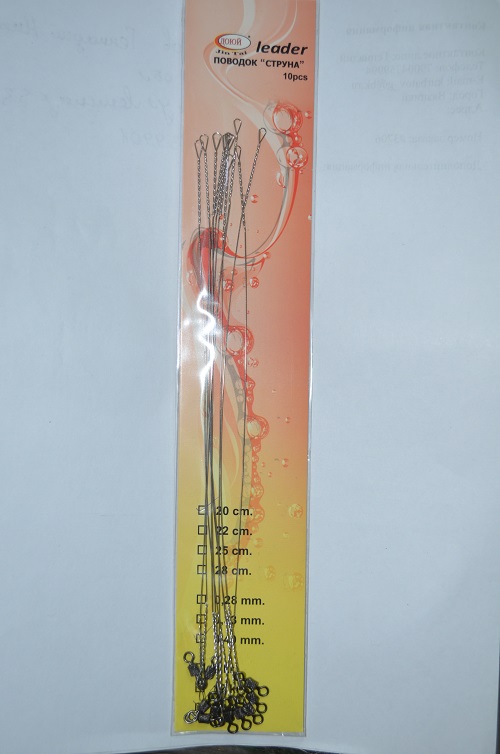 Поводки Струна с вертлюжком LEADER ДОЮЙ 20см-0,40mm до 17кг 10 штук.
