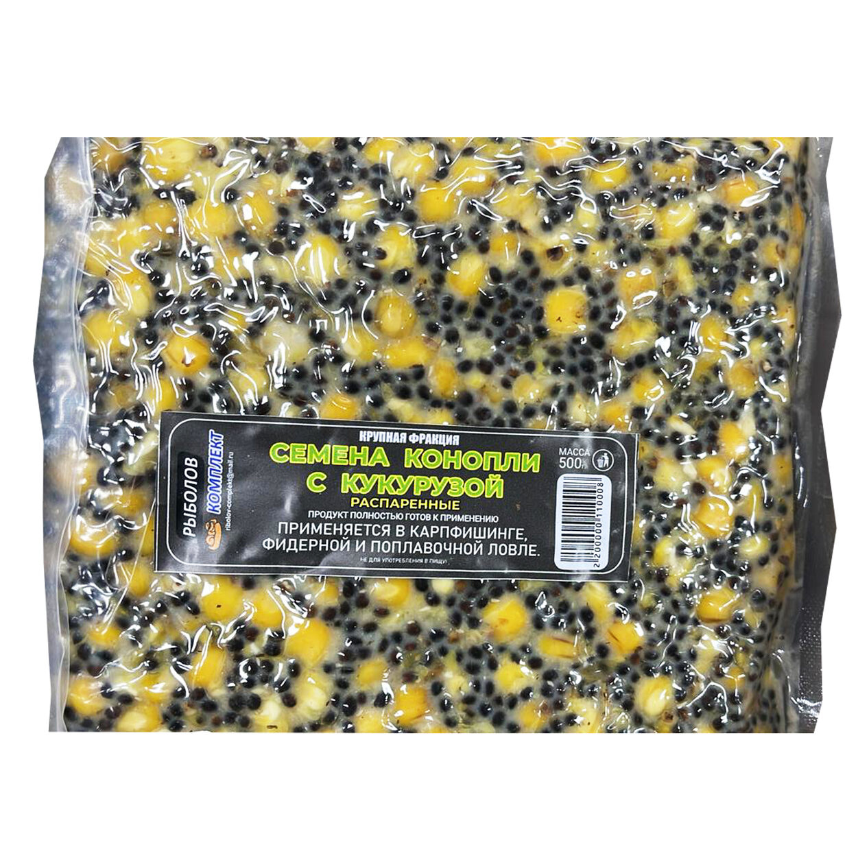 Привлекательность и Питательность: Сочетание конопли и кукурузы создает мощный сигнал для карпа. Конопля, благодаря своему ароматному маслу и легкой горчинке, моментально привлекает рыбу с дальних расстояний. Кукуруза же, с ее сладким вкусом и высокой питательной ценностью, удерживает карпа в зоне прикормки, стимулируя его к активному питанию. Крупная фракция обеспечивает длительное насыщение, заставляя рыбу возвращаться за добавкой.