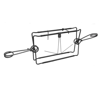 Капкан имеет тугие пружины. Заприте их в сжатом положении крючками, рамки взведённого капкана зафиксируйте предохранительной скобой.