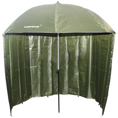 Зонт рыболовный Mifine с задней стенкой, оливковый, D-2.2m, 55051