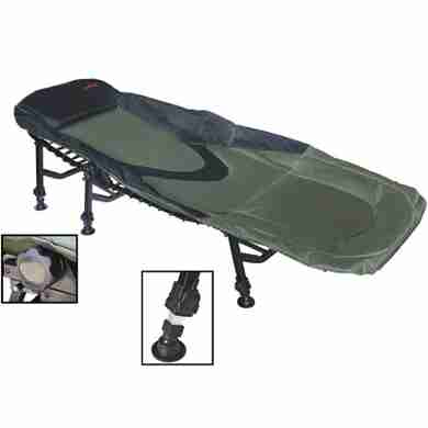 Отличная карповая раскладушка Mifine AG-1 с усиленным каркасом. Все ножки регулируются по высоте, что позволяет устанавливать кровать на неровном грунте. Наклон спинки регулируется в диапазоне 180 градусов. Цвет - зеленый. Мягкий матрас, съемный подголовник, надежные материалы и удобная конструкция. Легко устанавливается.