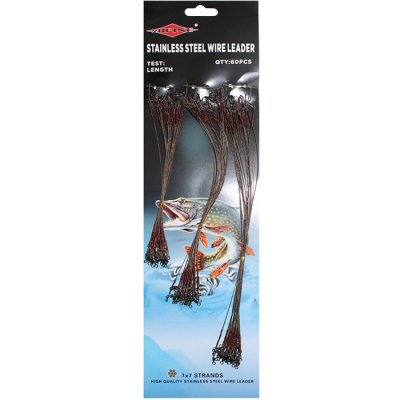 Плетение поводкового материала 7х7 из очень тонких нитей, изготовленных из специальной нержавеющей стали. Материал имеет непревзойденные характеристики мягкости при изгибании, благодаря чему позволяет вашей приманке вести себя более свободно и натурально. Поводок из 49 (7×7) нитей гораздо мягче, чем из 7 нитей, что позволяет проводить анимацию легких приманок.