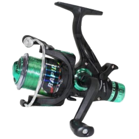Яркая серия фидерных катушек Mifine Rapid 64004 включает модели с универсальным передаточным числом 5,2:1. Оснащены бейтраннером для стравливания лески при поклевке. Количество подшипников отличается в зависимости от модели: 3+1 или 6+1. Мгновенный стопор обратного хода предотвращает случайное проворачивание механизма в обратном направлении. Балансировка ротора катушек Rapid позволила снизить лишние вибрации при работе механизма. В комплекте есть запасная шпуля, выполненная из пластика – удобное дополнение для быстрой смены оснащения на водоеме. В серии Rapid можно найти модели для разных условий фидерной ловли.