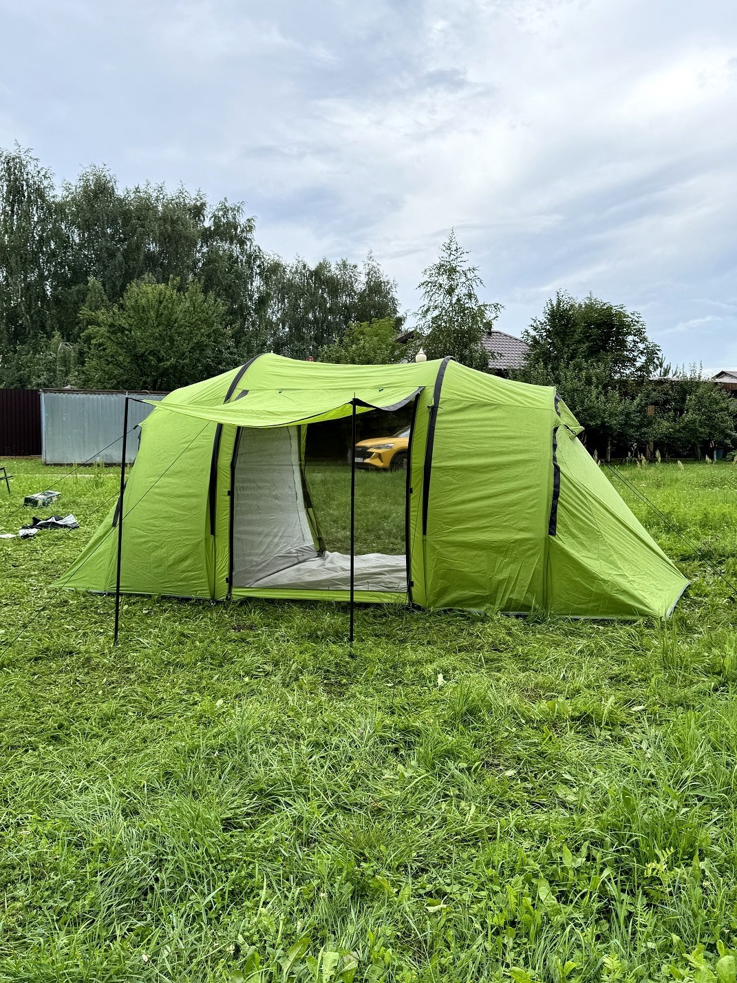 Палатка на 6 человек, размер (150+150+150)х220х185см, вес палатки 6.5кг. 190T полиэстер PU3000MM, 180Т воздухопроницаемая полиэфирная сетка, влагостойкая пропитка.