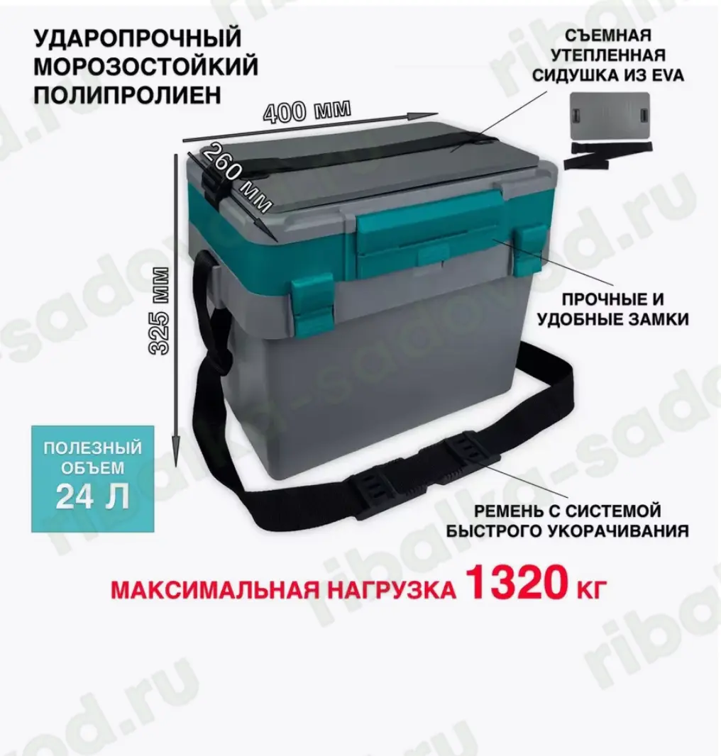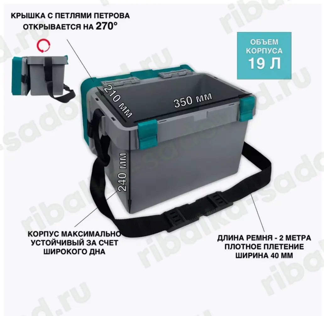 Ящик FISH'KA "Профи" изготовлен из морозостойкого ударопрочного полипропилена. Открытие верхней крышки на 270 градусов Кулисные петли на металлических осях позволяют открывать верхнюю крышку ящика на 270 градусов без опасения опрокидывания. Съёмное утеплённое сиденье Съёмное утеплённое сиденье из EVA на ремне с пластмассовыми люверсами обеспечивает комфортное место для отдыха во время рыбалки. Новые фирменные замки Все замки на металлических осях с надежной фиксацией, обеспечивая безопасное и плотное закрывание ящика. Устойчивая форма ящика Минимальная конусность ящика повышает его устойчивость и позволяет вместить больше снаряжения. Вместительная средняя крышка Средняя крышка ящика глубокая и разделена на два отделения, которые идеально подходят для хранения малых рыболовных коробок FISH'KA до 8 штук, багориков, весов, щипцов и других необходимых предметов. Дополнительный тюнинг В верхней крышке предусмотрены отверстия для крепления магнитов, позволяющие организовать дополнительные места для приманок. Ремень из стропы высоко плотности, шириной 40 мм и длиной 2 м с эластичным, нескользящим, широким наплечником, с оригинальной системой быстрого укорачивания. Удобен для хранения жерлиц, малых и больших коробок «FISH'KA», а также различных рыбацких принадлежностей. Размер: 40*26*32.5 см (д*ш*в) Вес: 2,4 кг Объем: 24 л. Материал: полипропилен