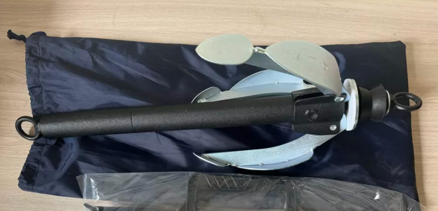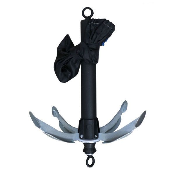 Якорь складной – разборный – предназначен для удержания надувных лодок на месте стоянки. Основные преимущества данного якоря это: Универсальность – возможность уменьшить вес с 3 кг уменьшить на 2кг, Стоит лишь открутить один элемент якоря. Компактность – возможность складывать лапы якоря, что значительно уменьшает его габариты и обеспечивает безопасность при транспортировке. Увеличенный грунтозацеп на лапах якоря, позволяет более надежно удерживать лодку на месте. Для приведения якоря в рабочее положение необходимо последовательно развести лапы якоря, преодолевая сопротивление фиксирующей пружины, до их полной фиксации