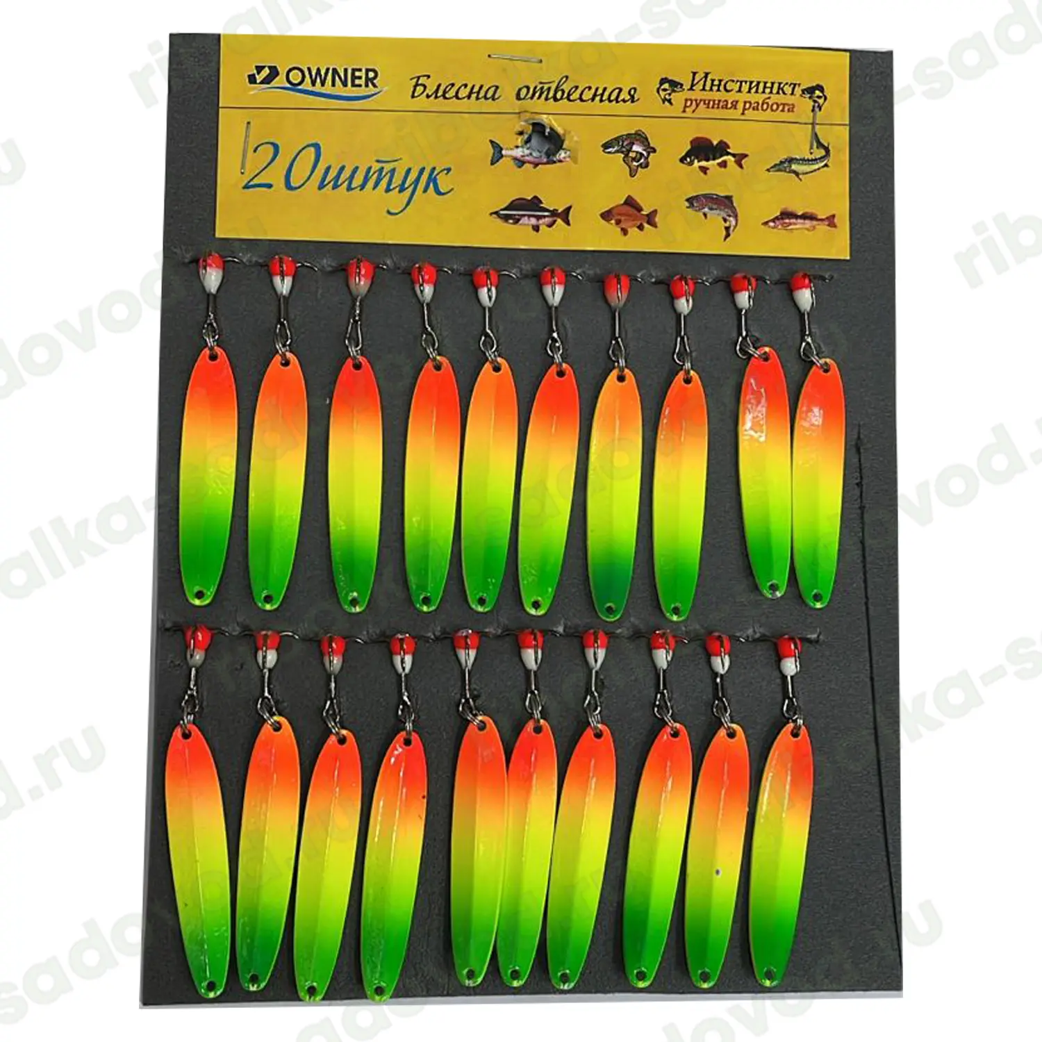• Комплектация: Блесны поставляются в упаковке по 20 штук, что обеспечивает рыболова запасом приманок на длительный период.
