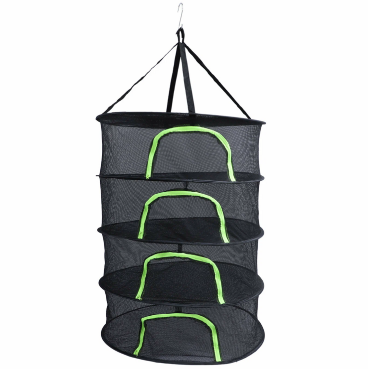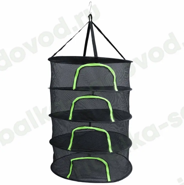 Подвесная сетка-сушилка с защитой от насекомых. Раскладка автомат: диаметра из 25 в 60 см. Позволяет сушить: рыбу, мясо, грибы, ягоды, травы, овощи и фрукты. Прочное многослойное плетение препятствует попаданию насекомых, но обеспечивает приток воздуха для равномерного проветривания без переворачивания рыбы. Оснащена двойным дном для полной изоляции от животных, птиц и насекомых. Доступ внутрь сетки оборудован застежкой-молнией. Не требует сборки, раскладывается одним движением. В сложенном состоянии компактна и удобна для хранения и перевозки. Легко моется после использования и быстро сохнет. Швы выполнены хорошо, замок качественный, каркас из металла, сама сетка прочная.