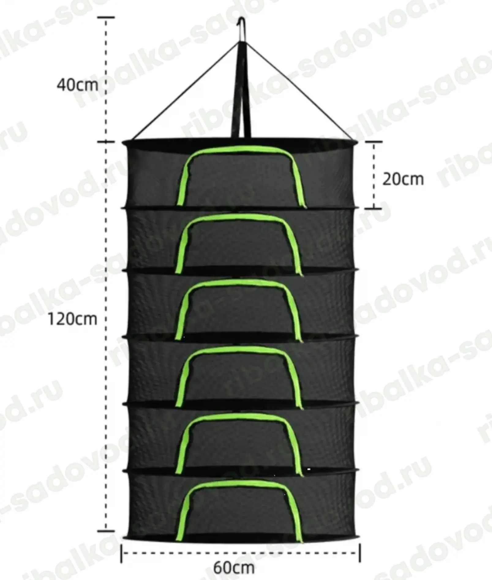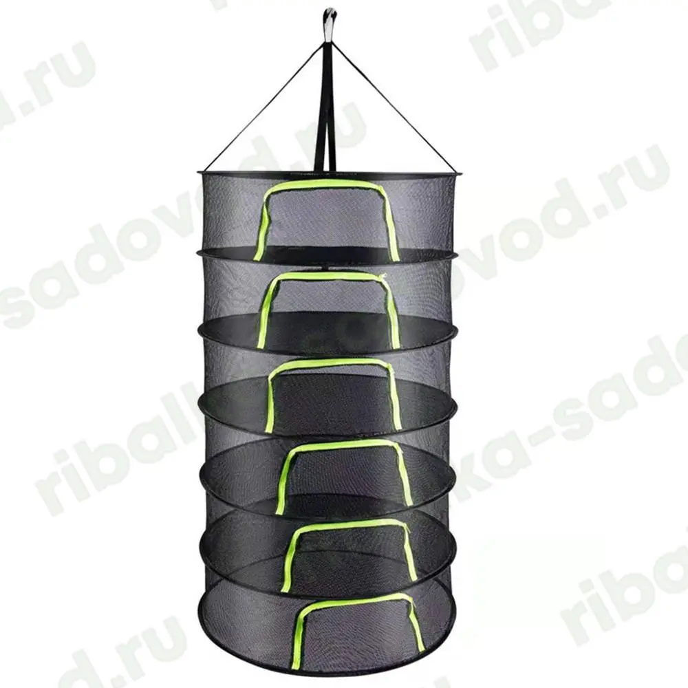 Подвесная сетка-сушилка с защитой от насекомых. Раскладка автомат: диаметра из 27 в 60 см. Позволяет сушить: рыбу, мясо, грибы, ягоды, травы, овощи и фрукты. Прочное многослойное плетение препятствует попаданию насекомых, но обеспечивает приток воздуха для равномерного проветривания без переворачивания рыбы. Оснащена двойным дном для полной изоляции от животных, птиц и насекомых. Доступ внутрь сетки оборудован застежкой-молнией. Не требует сборки, раскладывается одним движением. В сложенном состоянии компактна и удобна для хранения и перевозки. Легко моется после использования и быстро сохнет. Швы выполнены хорошо, замок качественный, каркас из металла, сама сетка прочная.