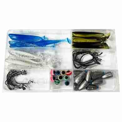 Набор, джиг головки, силиконовые приманки, в пластиковом боксе.