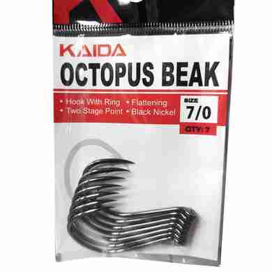 Крючок Kaida OCTOPUS, одинарный, на сома, в упаковке 7 штук. (Мин заказ 10 пачек) (Размеры внутри)