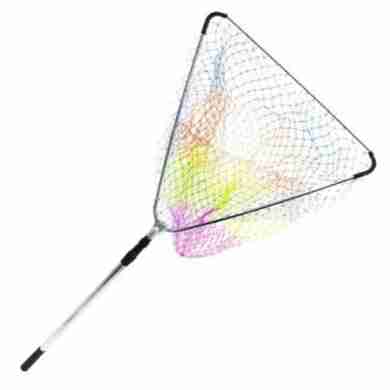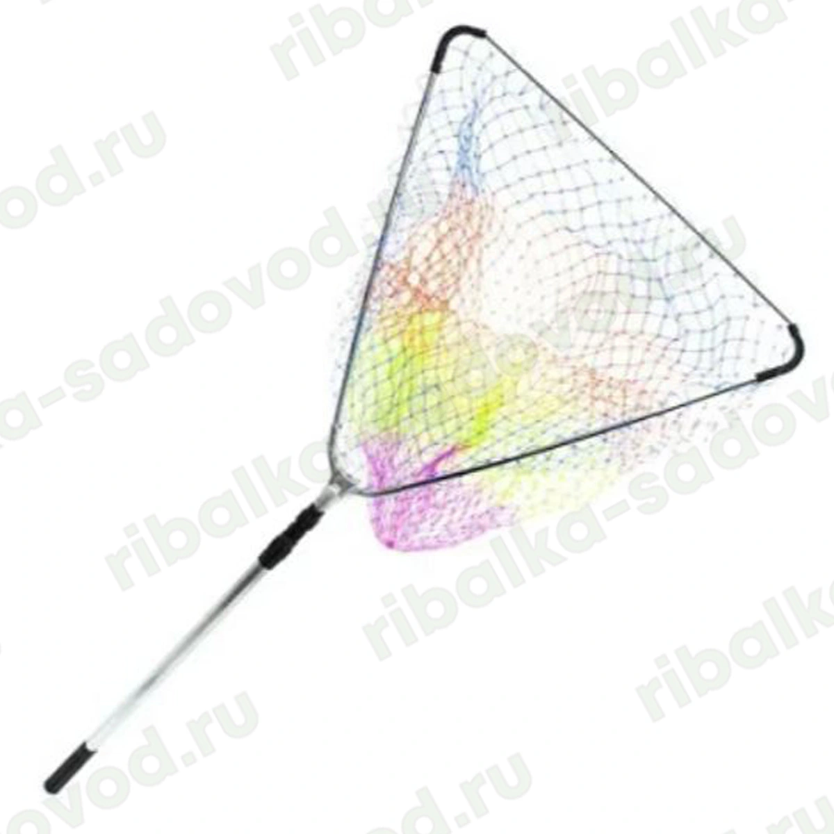 Подсачек Kaida треугольный, цветная леска, ручка белый металл, круглая (Размеры внутри)