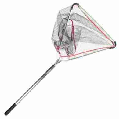 Подсачек Kaida треугольный складной, серая сетчатая ткань с ПВХ покрытием, ручка шестиугольного сечения (Размеры внутри)