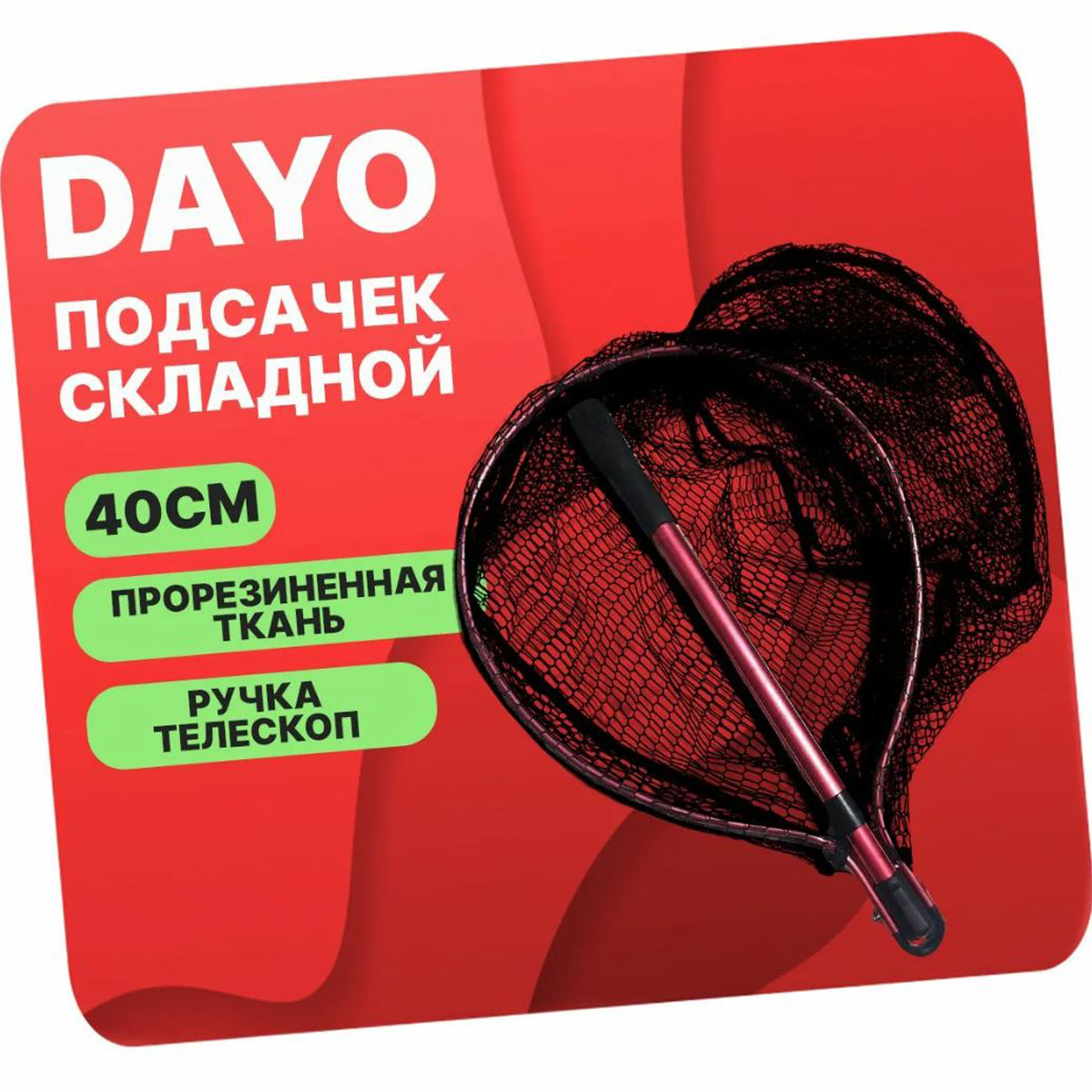 Подсак овальный DAYO прорезиновый, сетчатая ткань, складной (Размеры внутри) — отзывы